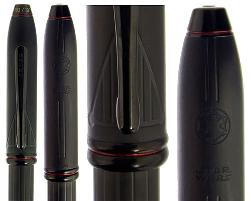 เปิดเผยด้านมืดของคุณออกมา ด้วย Cross Townsend Star Wars Darth Vader Limited Edition ตัวปากการุ่นนี้เป็นสีดำ แต่งผิวแบบลายผ้า Satin หัวปากกาเป็นทองคำแท้ 18 กระรัต ลวดลายบนตัวปากกาได้รับการออกแบบให้บ่งถึงเครื่องแต่งกาย และหมวกของตัวละคร Dart Vader ในภาพยนตร์เรื่อง Star Wars